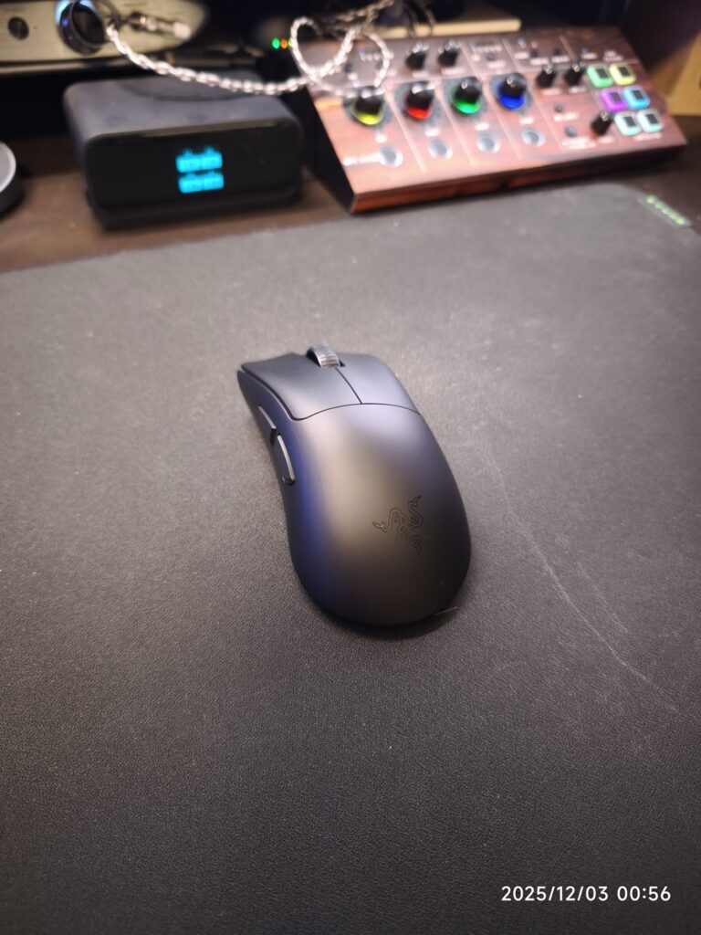 DeathAdder V4 Pro、握った瞬間に「硬っ!」と感じるほど頑丈です。